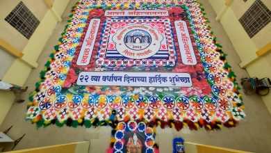 अहिल्यानगर महानगरपालिकेच्या 22 व्या वर्धापन दिनानिमित्त येथील कलाकार डॉ अमोल बागुल यांनी रांगोळीचा असुबा पॅटर्न रेखाटला असून ही रांगोळी 40…
