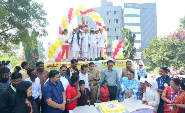 यावेळी विद्यार्थ्यांनी भारत माता की जय…., देश की ताकत हम सब बच्चे…, जोडो जोडो भारत जोडो… च्या घोषणा देत पाहुण्यांच्या हस्ते आकाशात फुगे व पांढरे कबुतरे सोडण्यात आली. तर जिल्हा बाल अत्याचार मुक्त करण्यासाठी योगदान देण्याचा संकल्प उपस्थितांनी केला.