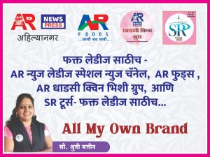 श्रुती मॅडम चे हक्काचे स्वतःचे ब्रँड – ४ वर्षांपासून AR न्युज लेडीज स्पेशल न्युज चॅनेल, AR फुड्स, AR धाडसी क्विन भिशी ग्रुप, SR टूर्स फक्त लेडीज साठीच..