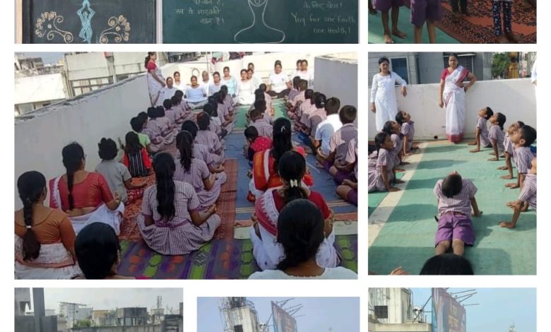 सौ. निनाद ढोरे यांनी योग हा शारीरिक, मानसिक, बौद्धिक विकास करण्यासाठी कसा महत्त्वपूर्ण आहे हे विशद केले. यावेळी विद्यार्थ्यांनी दंडस्थितीतील आसने, सूर्यनमस्कार व बैठक स्थितीतील आसने, प्राणायाम ,ओंकार जप यांचे प्रात्यक्षिक केले.