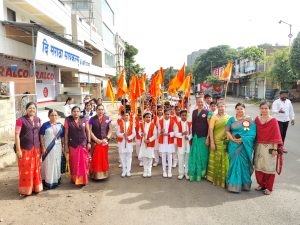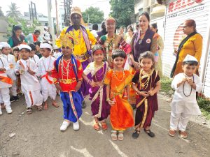 विठूनामाच्या जयघोषांनी शाळेचा परिसर दुमदुमून गेला होता. दिंडीत शाळेतील विद्यार्थी विठ्ठल-रुक्मिणी, विविध संत तसेच वारकऱ्यांच्या पारंपरिक वेशभूषेत टाळ, वीणा, भगवे ध्वज व तुळशी वृंदावन घेऊन सहभागी झाले होते.