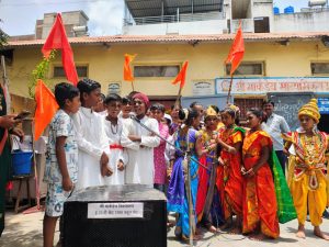 दिंडीत विठ्ठल-रुक्मिणी, ज्ञानेश्वर माऊली, संत तुकाराम, मुक्ताबाई यांच्या वेशभूषेत असलेल्या विद्यार्थ्यांनी सर्वांचे लक्ष वेधून घेतले. टाळ मृदुंगाच्या गजरात, विठू नामाच्या जयघोषात, पारंपारिक वारकऱ्यांच्या वेशभूषेत, हातात भगवे ध्वज घेतलेले विद्यार्थी उस्फूर्तपणे दिंडीत सहभागी झाले होते.